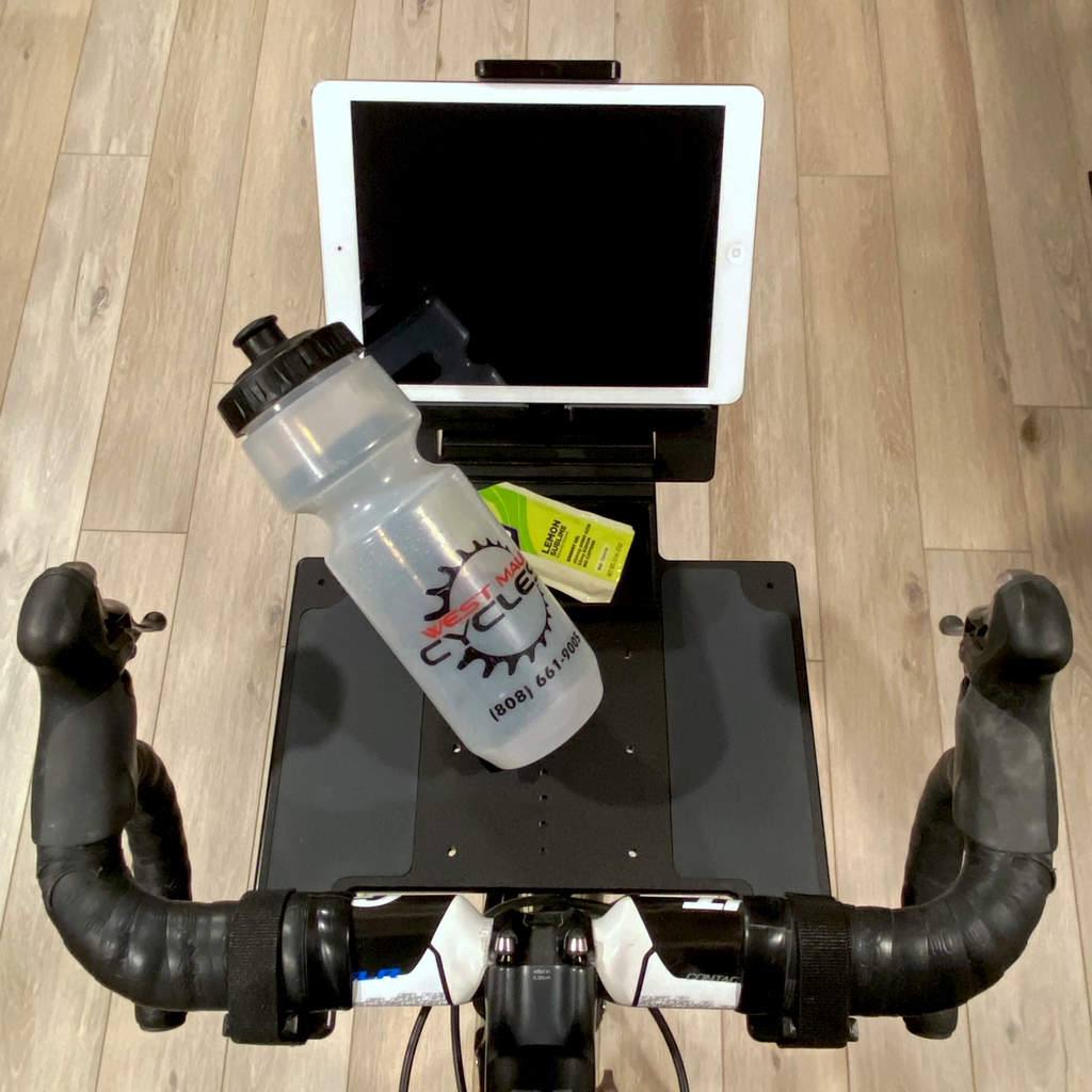 The AEROBOARD -ROADIE is purposefully designed to give you the most comfortable and convenient indoor ride possible. It puts all of your training gear, electronics, water and fuel RIGHT in front of you, where you need it most. AEROBOARD -ROADIE takes up NO floor space, allowing you to set up your trainer in tight spaces (like an office or closet) or just reduce floor clutter. Because of how QUICK it is to take on and off, you have the freedom to break down your trainer or just take your bike outside without adding a bunch of extra time. But don't let the compact design fool you... It's modular design will let you set up all your training gear exactly how you want!