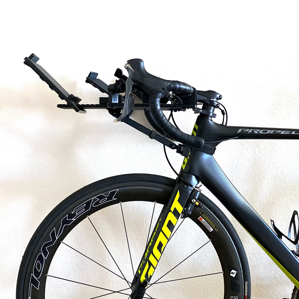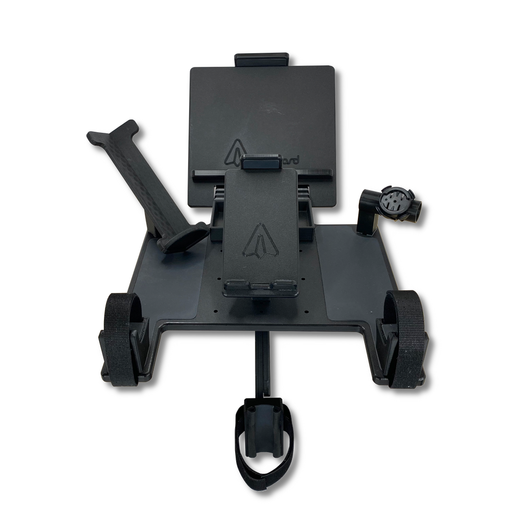 The AEROBOARD -ROADIE is purposefully designed to give you the most comfortable and convenient indoor ride possible. It puts all of your training gear, electronics, water and fuel RIGHT in front of you, where you need it most. AEROBOARD -ROADIE takes up NO floor space, allowing you to set up your trainer in tight spaces (like an office or closet) or just reduce floor clutter. Because of how QUICK it is to take on and off, you have the freedom to break down your trainer or just take your bike outside without adding a bunch of extra time. But don't let the compact design fool you... It's modular design will let you set up all your training gear exactly how you want!