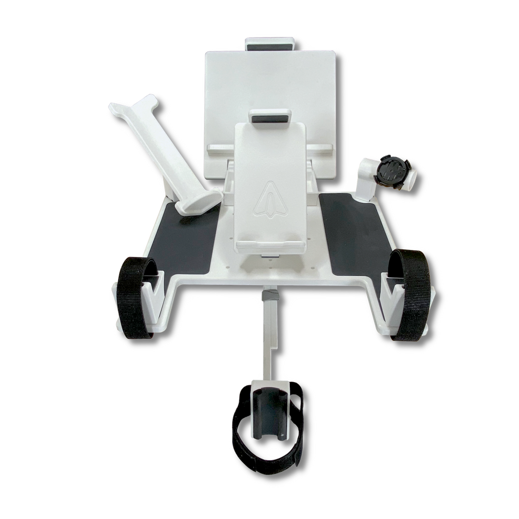 The AEROBOARD -ROADIE is purposefully designed to give you the most comfortable and convenient indoor ride possible. It puts all of your training gear, electronics, water and fuel RIGHT in front of you, where you need it most. AEROBOARD -ROADIE takes up NO floor space, allowing you to set up your trainer in tight spaces (like an office or closet) or just reduce floor clutter. Because of how QUICK it is to take on and off, you have the freedom to break down your trainer or just take your bike outside without adding a bunch of extra time. But don't let the compact design fool you... It's modular design will let you set up all your training gear exactly how you want!