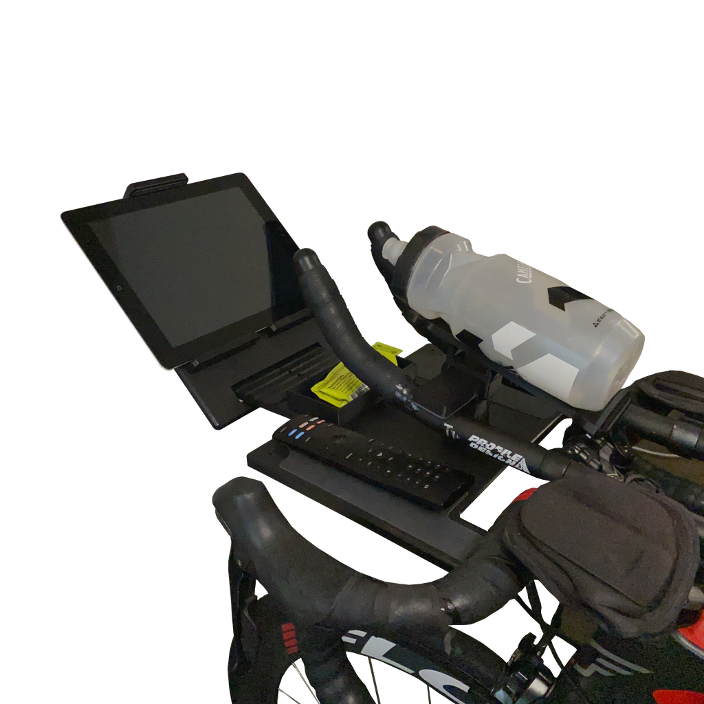 The AEROBOARD -TRI is purposefully designed for TT (Tri) bikes to give you the most comfortable and convenient indoor ride possible. It puts all of your training gear, electronics, water and fuel RIGHT in front of you, where you need it most. AEROBOARD -TRI takes up NO floor space, allowing you to set up your trainer in tight spaces (like an office or closet) or just reduce floor clutter. Because of how QUICK it is to take on and off, you have the freedom to break down your trainer or just take your bike outside without adding a bunch of extra time. But don't let the compact design fool you... It's modular design will let you set up all your training gear exactly how you want!