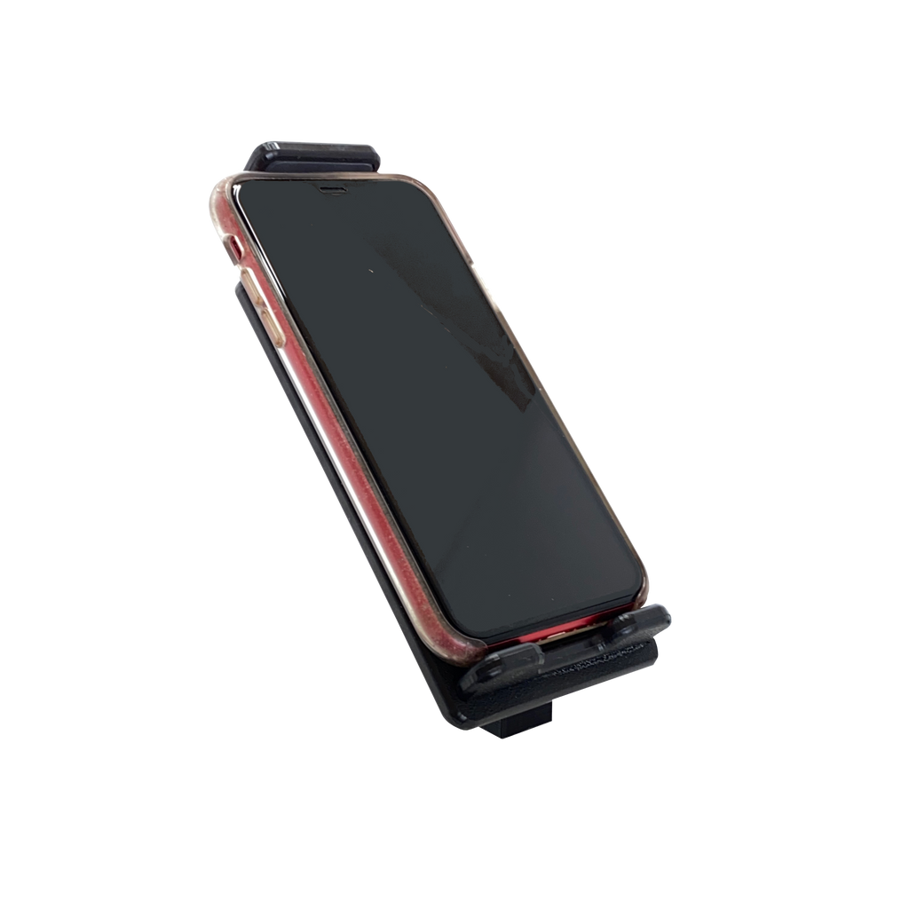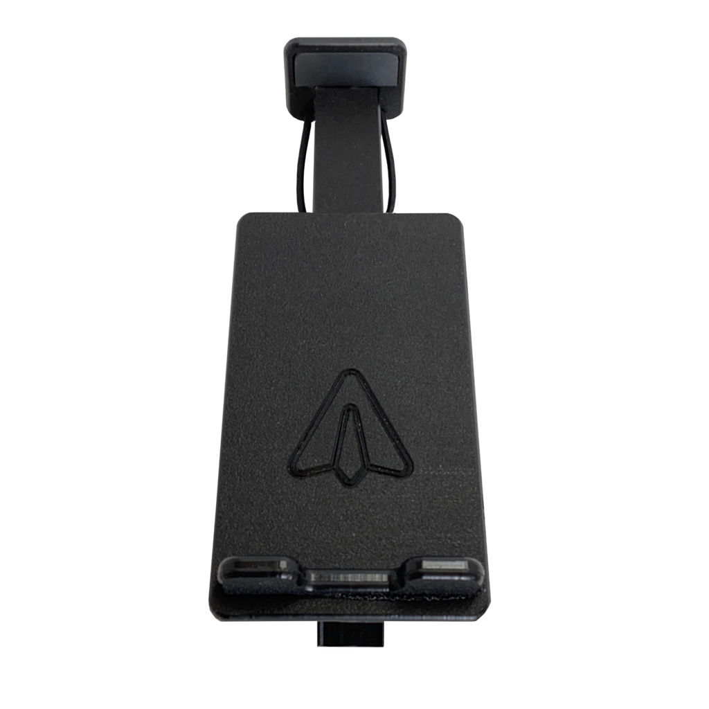 Like the Device Holder on Aeroboard, the Phone Holder will securely hold many sized phones up to 7.25 inches tall with it's quick adjusting slide top. The slide top pinches your phone into place, preventing it from falling when/if you bump it (most likely getting on/off the bike) or just by using it. The included thumb screw allows you to attach the Phone Holder into any accessory mounting hole on the Main Board. A 45 degree angle of the phone holder keeps your phone out of the way, but also comfortably accessible.